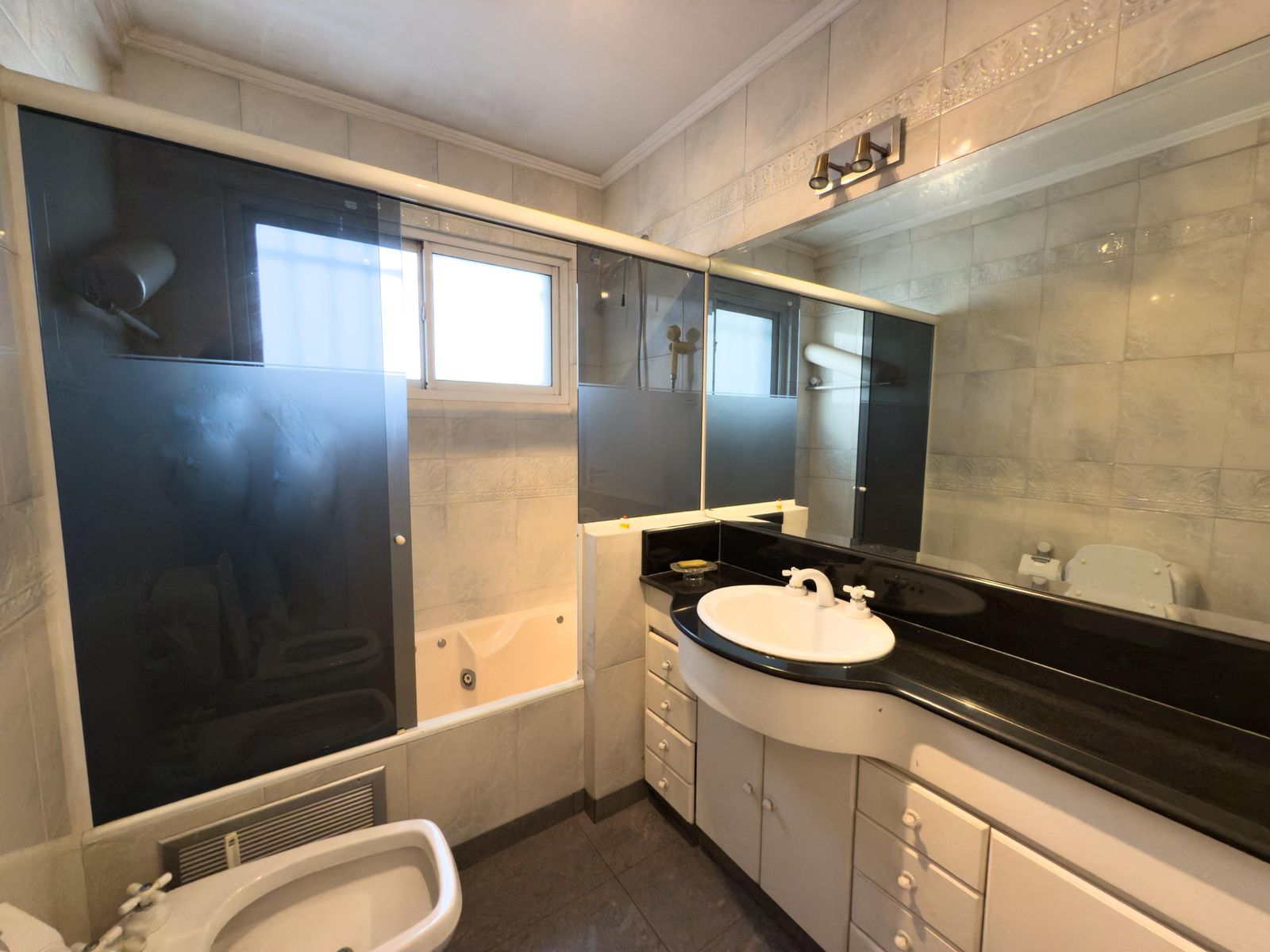 Casa de 5 amb desarrollada en tres plantas , sótano , garage de 7.20x2.70 mts con placares de guardado y portón automatizado , amplia cocina con comedor diario con barra desayunadora 3.50x4.75 mts y 2.70 x 4.00 mts , toilette , habitación de 3.50 x 2.25 mts . living al frente de 8.50x 5.20 mts con importantes muebles encastrados y detalles decorativos , escalera curva de gran porte para acceder a planta alta . Patio con parrilla y jardín de 15 x 7.60 mts . Planta alta con tres habitaciones , dos baños completos , balcón al frente , terraza contrafrente y lavadero . Habitaciones de 3.80x3.50 mts , 3.00 x 3.30 mts y 4.00 x 3.15 mts Todas con pisos de madera. Importantes placares y ventanas de piso a techo con persianas regulables . Dos baños completos de 2.28x1.75 con cuadro de ducha , segundo baño completo con hidromasaje de 2.65 x 1.70 mts , lavadero de 5.50 x 3.20 mts y terraza de 5.50 x 3.20 mts. La casa cuenta con equipo frio-calor central en funcionamiento